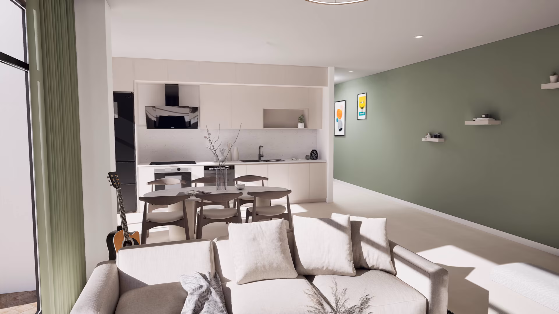 Séjour lumineux avec grande baie vitrée